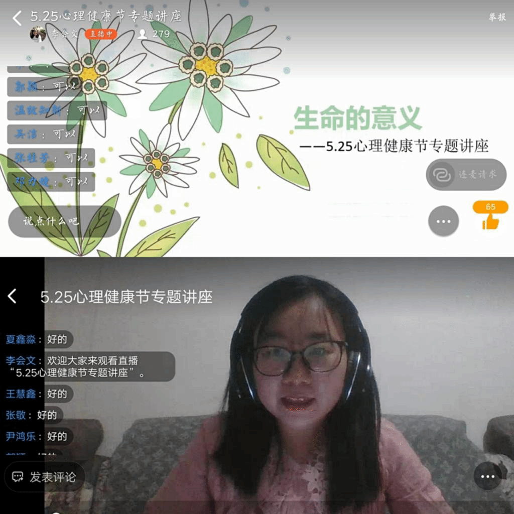 5月31日晚,绅士漫画 举行“‘生命的意义’5.25心理健康节”线上专题讲座。本次讲座由辅导员李会文讲解, 17—19级心理委员、宿舍长及部分学生参加学习。讲座中,李会文围绕“人生的意义”、“生命的质量”等方面进行讲解,同时就“大学生如何在疫情期间安心学习”进行强调并解答了同学们在疫情期间的困惑,勉励学生在家认真学习,努力提升自我。
