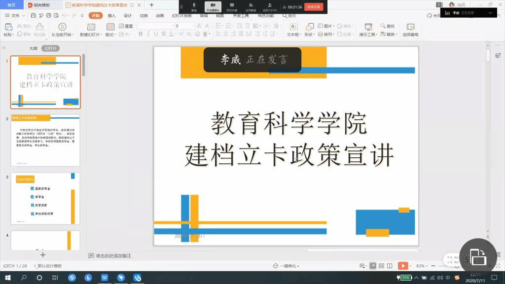 会议以钉钉视频的方式进行。辅导员李威老师就建档立卡贫困家庭学生困难生认定程序、国家助学金资助标准、勤工助学岗位申请、学费减免、特殊困难补贴等相关资助政策和存在的问题进行了详细的讲解和解答。