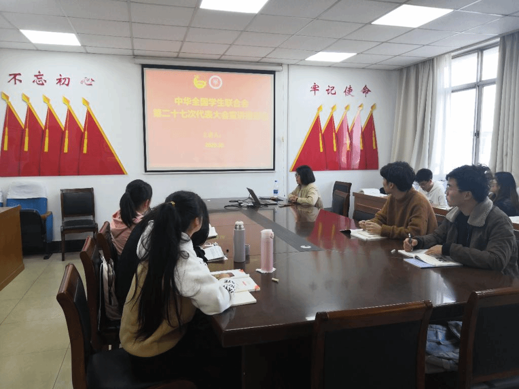 10月17日下午,绅士漫画 在零号楼十楼会议室举行全国学联二十七大精神宣讲报告会。院团委书记熊慧娟、第五十一期入党积极分子参加本次会议。会议由熊慧娟主持。会议伊始,熊慧娟在发言中明确了此次学习的目的和意义。随后,熊慧娟领学了习近平总书记贺信的主要精神、党中央致词的主要精神、团中央书记处第一书记贺军科在大会开幕会上的致词和闭幕会上的讲话及教育部党组成员、副部长郑富芝在大会闭幕会上的讲话主要精神等内容。最后,熊慧娟总结了本次报告会,并勉励同学们作为新时代的大学生,要牢记习近平总书记和党中央的嘱托,广泛地团结凝聚身边同学,练就过硬本领,身体力行把会议精神落到实处。