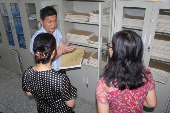 一行11人参观了河师大教育学院的档案室,认真学习了评估材料的分类和整理情况。