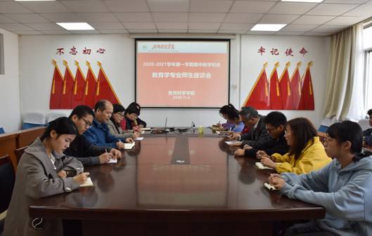 于0#楼十楼会议室分别召开了2020-2021学年第一学期期中教学检查学生座谈会。院长杨宾峰、副院长王晶、教育系主任李红义、教研室主任钱晓玲、郝一宁、杨红旻、于洪姣、教学秘书郭庆霞及部分教师代表出席了座谈会,2018、2019、2020级各班班委代表参加了座谈会。
