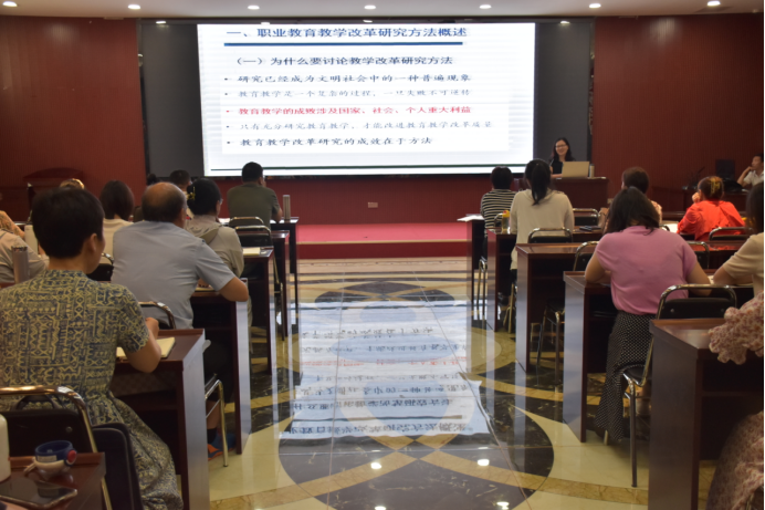 宋飞琼教授、孟景舟教授、李小丽教授、高佳副教授等多位专家、学者授课。培训内容涉及“以教师双赛为抓手,助推名师团队建设”“课堂教学中的偏差和对策”“中等职业学校教育教学改革研究方法”“职业学校教师的学术追求”“弘扬师德师风,助力中职教师课程思政能力提升”“以说课技能训练为抓手,助推教师教学能力提升”等方面。