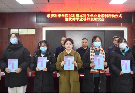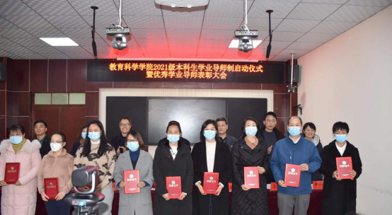 2020-2021学年优秀本科生学业导师名单》。全体受表彰教师上台领取优秀指导教师证书。