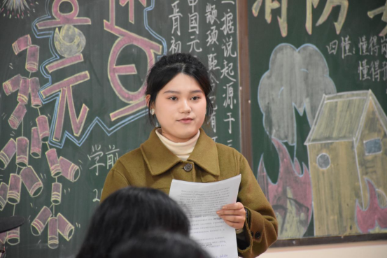 学前教育214班高一杰代表2021级学生发言,她认为学生应明确自身学习目的,刻苦钻研专业知识,积极参与导师要求的各项活动,及时完成导师布置的学习任务,做到“崇德尚能,知行合一,自立自强,求是创新”。