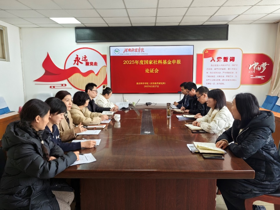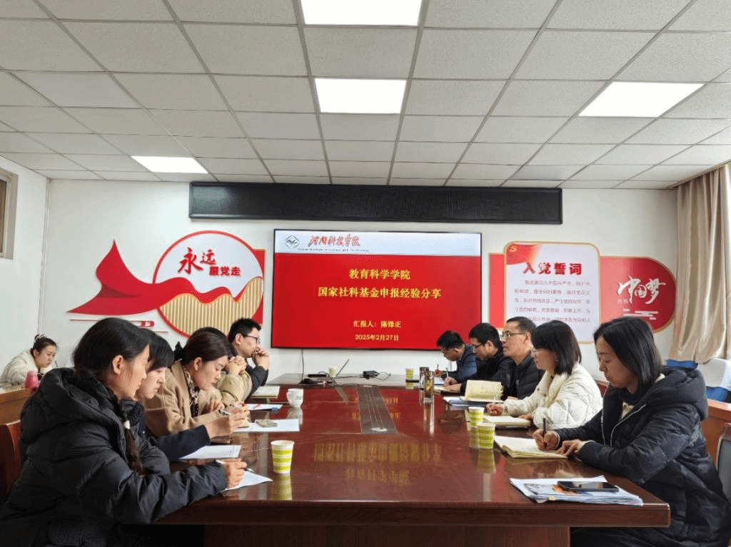 于0#1008会议室召开2025年度国家社科基金申报推进会。学院领导班子全体成员、2024年度国家社科基金获得者陈锋正博士,以及全体申报者参加会议。本次会议由副院长高佳主持,分为两个阶段。
