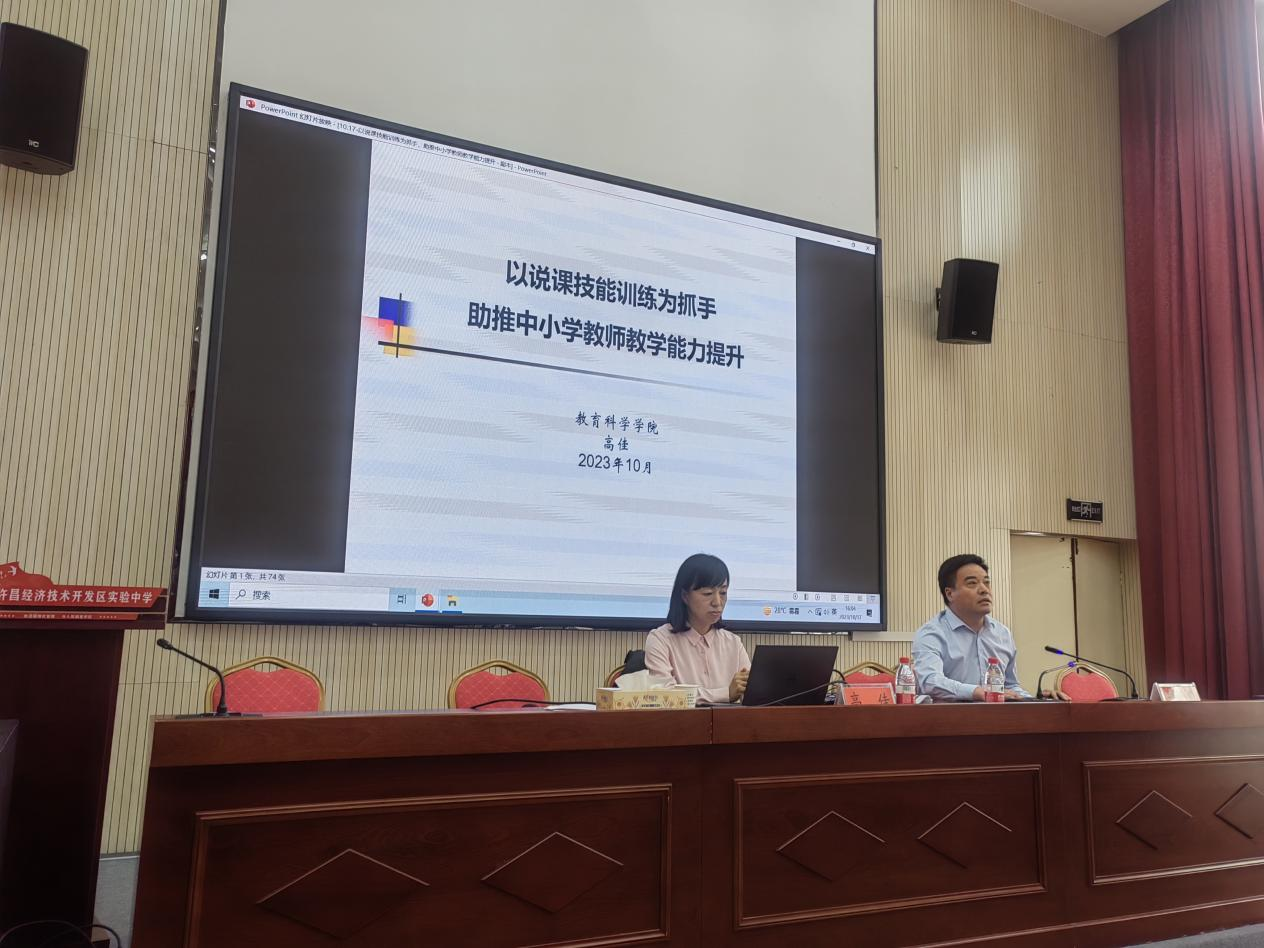 教师高佳以中小学教师教学能力提升为主题开展专题讲座,100名中小学教师参会。
