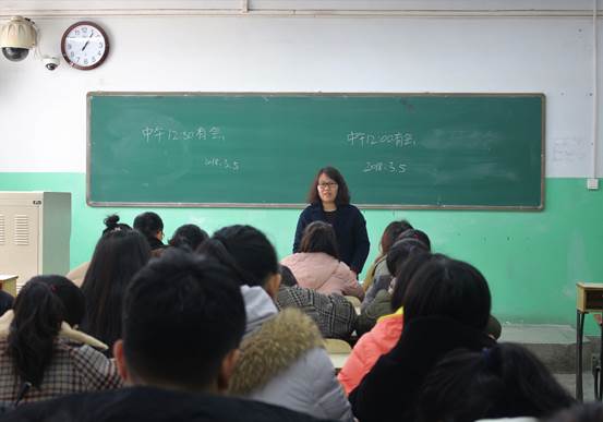 会上,熊慧娟老师宣布了新学期工作安排,并对上学期期末成绩进行了总结。她说到:“新学期、新气象,要求大家尽快调整状态,投入到学习工作中,要常抓班风、学风建设;各团支部就河南省团代会团员代表、团干代表人选召开支部大会进行投票选举;各班级也要召开新学期主题班会。”随后,李威老师就班风建设先进集体表彰及五四评优评先问题进行了说明;卢璐洁老师强调了“两会”期间安全稳定问题,并对上学期17级期末考试进行了详细分析,要求各班级有针对性的撰写分析报告