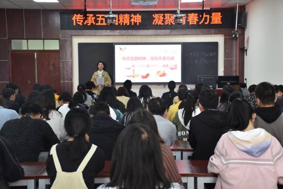 在老图书馆四楼教学实训技能室开展了“传承五四精神,凝聚青春力量”纪念五四运动一百周年活动,学院团员代表100余人参加活动。