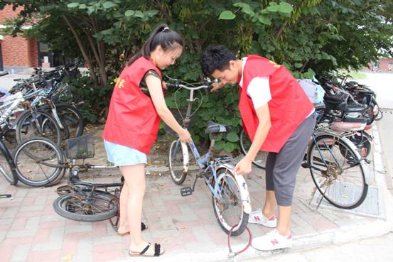 于6月20日组织受资助学生50余人在12号宿舍楼和一号教学楼集中开展志愿服务活动。本次志愿服务活动主要涉及乱序自行车的摆放、教学楼垃圾的清扫等,在活动过程中,同学们热情洋溢,展现了教科学子阳光向上,精神饱满的良好状态。