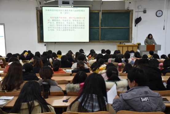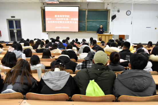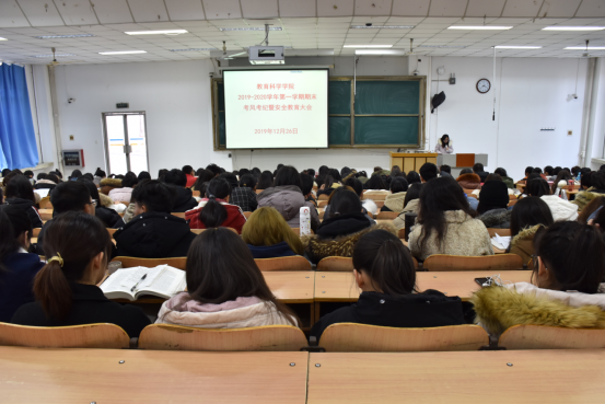 于零号楼合一教室、二号楼合四教室分年级召开2019-2020学年第一学期期末考风考纪暨安全教育大会。会议由各年级辅导员主持,2017、2018、2019级全体学生参加。
