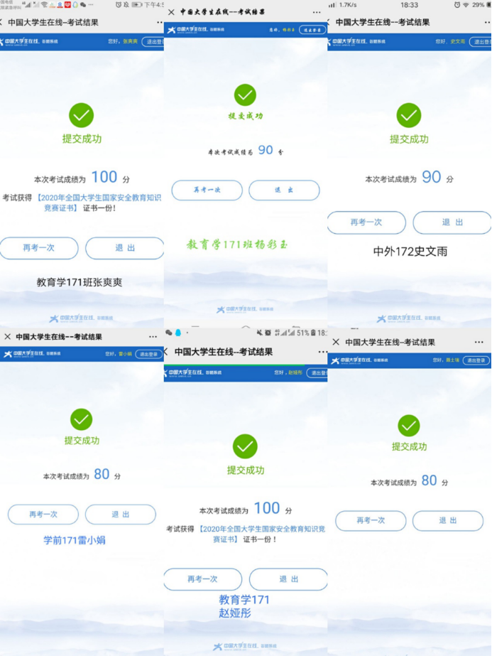 组织全体学生1000余人通过中国大学生在线、易班、国家开放大学网站等在线教育平台观看学习教育部组织录制的“2020年全民国家安全教育日高校公共课”、国家安全日宣传片、《焦点访谈》国家安全教育等视频,将线上与线下相结合、学院与学生相联动,切实有效发挥学校作为国家安全教育的重要阵地作用,为抗击疫情贡献一份力。