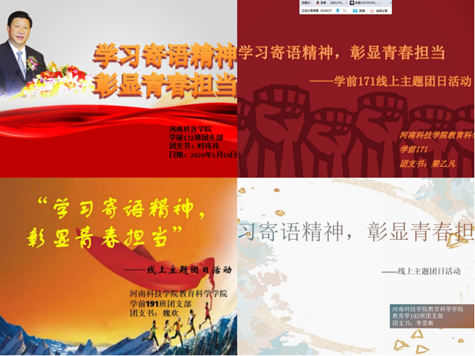 组织全院各团支部开展“学习寄语精神,彰显青春担当”线上主题团日活动。活动由各团支部书记主持。
