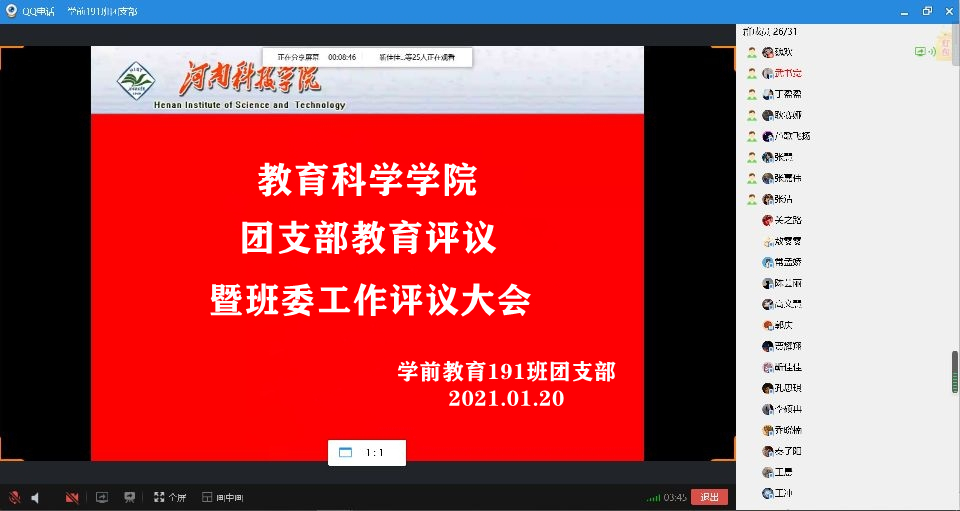 组织各团支部开展2020年度团支部教育评议暨班委工作评议活动。活动由各团支部书记主持,支部全体成员参加会议。