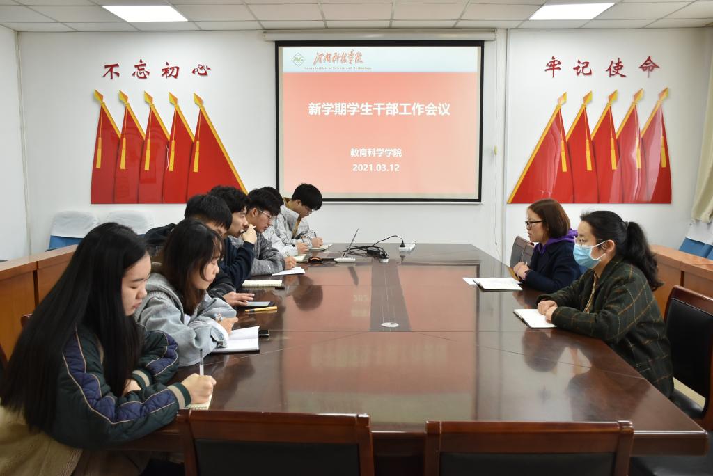 于零号楼十楼会议室召开新学期学生干部工作会议。团委书记熊慧娟、团委副书记卢璐洁及主席团全体成员参加会议。会议由熊慧娟主持。