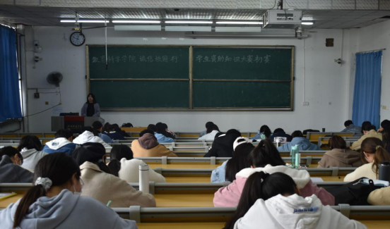 于一号楼合一教室举办“诚信校园行”学生资助知识大赛,60余名学生参加此次大赛。