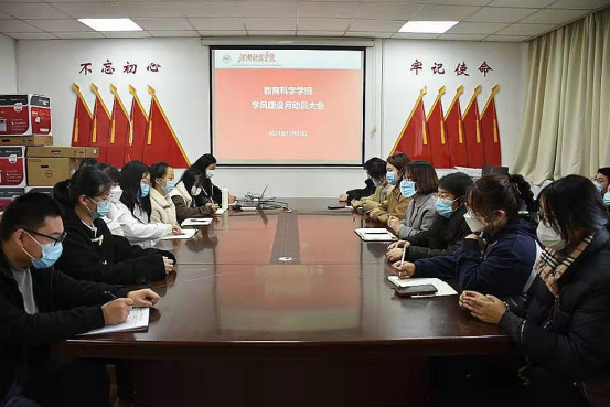 学风建设月的活动内容进行安排部署。她首先提醒大家,期末考试在际,各位同学要端正学习态度、提高学习效率,积极备考,同时也要积极参与学风建设活动,在实践中提升自我。随后,她强调了学前教育师范专业认定工作的重要意义,希望同学们在思想上做到高度重视。最后,她指出,疫情防控期间要加强监督管理,加大违纪行为的惩治力度,引导学生自觉自律、互相督促,养成良好的行为规范。
