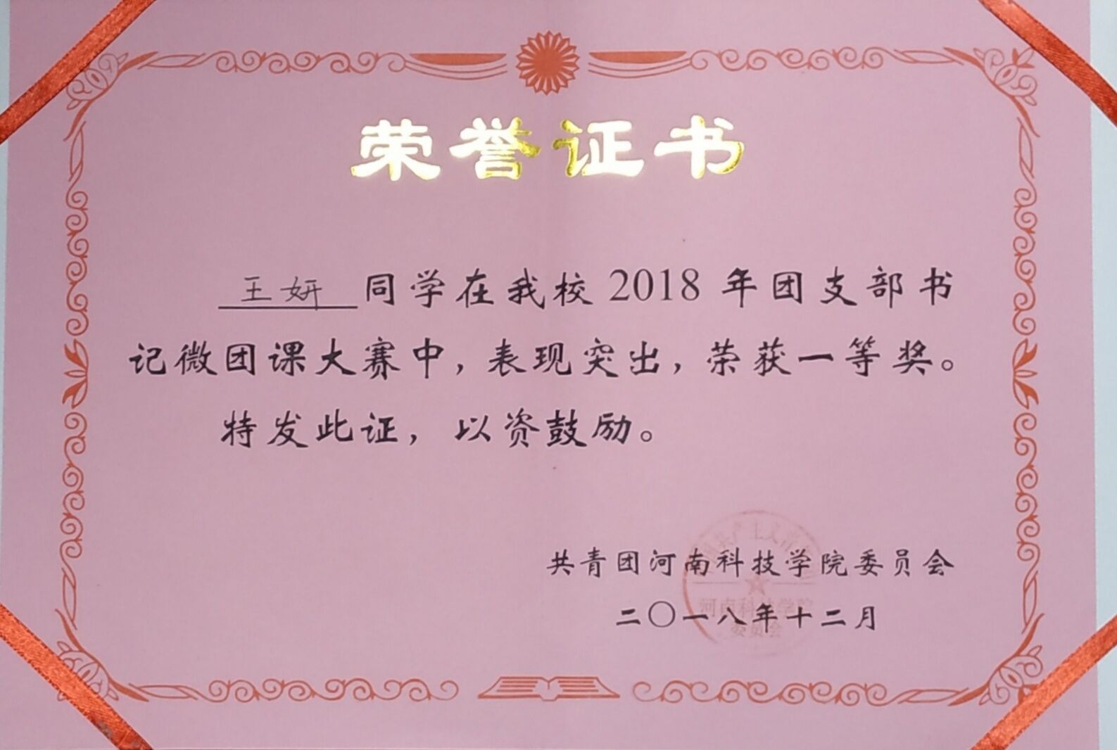 12月7日,由校团委主办、绅士漫画 承办的2018年团支部书记微团课大赛在图书馆一楼报告厅举行。凭借真挚、朴实的语言和精彩的讲说,学前教育173班王妍同学获本次比赛一等奖。