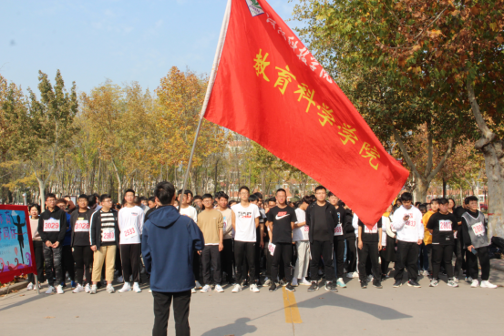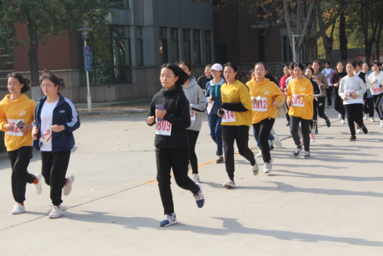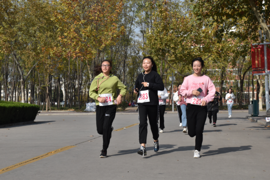 赛前,李会文向全体参赛选手宣读注意事项,着重强调赛事中的安全问题,并带领大家做赛前热身。随着裁判的一声令下,浩荡队伍冲出起跑线。他们强健的步伐和奔跑的身姿铸成了一道亮丽的风景线。赛道旁,服务人员送纸送水,加油助威。赛道里,参赛学生坚持不懈,向着终点奋进。历经一个小时热烈而紧张的比赛,参赛人员不断挑战自我,先后到达终点。