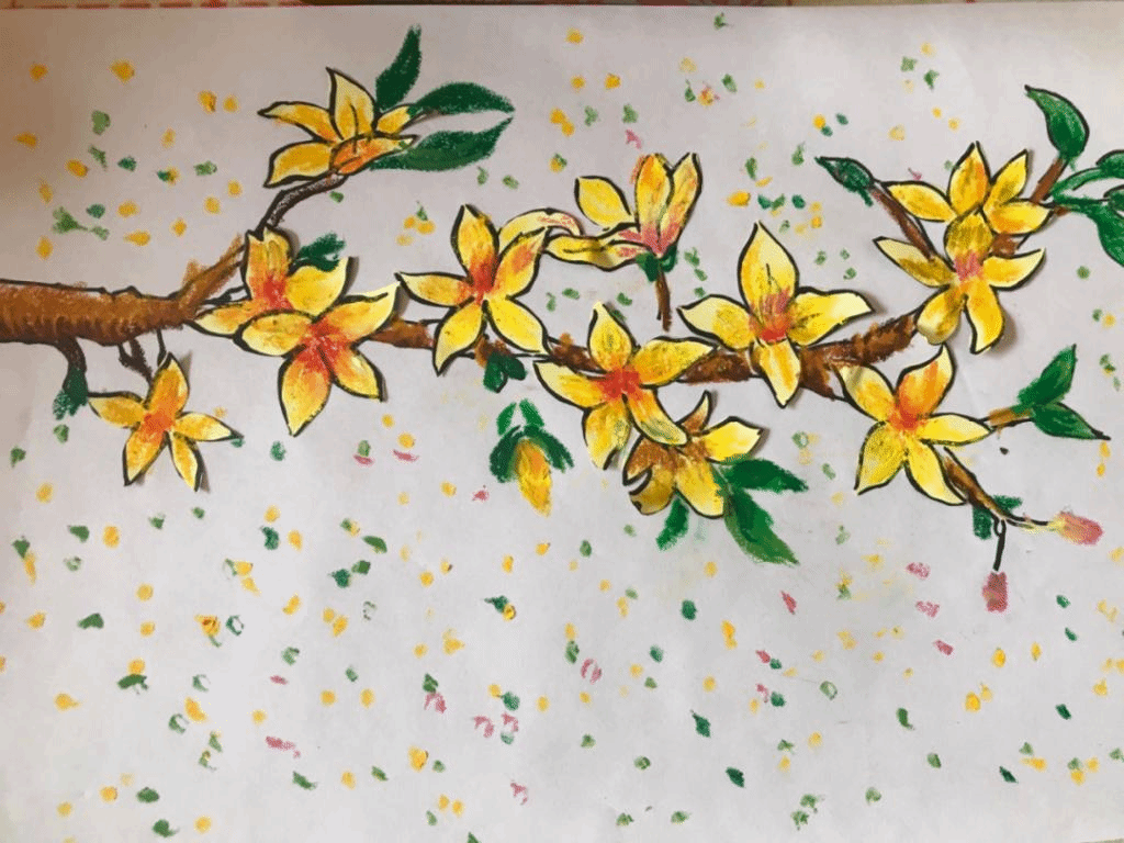 “小朋友疫情期间乖乖隔离在家,是不是没有看到迎春花呀,没有关系,今天我们一起来制作一幅‘迎春图’,献给奋斗在前线的白衣天使,愿他们白衣卸甲,平安归来。”由于疫情的缘故,今年春天大家并没有像往年一样身临其境感受盛开的鲜花。因此,在支教过程中,实践队员发挥特长,特地开设了一节以“春日希冀”为主题的手工课,用简单的画笔和剪刀带领小朋友制作迎春花。在手工课结束后,实践队员向小朋友讲述发生在这个春天里的抗疫故事,用最简单的话语讲述医护人员的无私奉献以及中国人民的坚强勇敢。“姐姐,我可以把这幅作品送给我们社区的医生阿姨吗,她在疫情期间可辛苦了,每天都在社区里给我们普及防疫知识,还给我们量体温呢。”实践队员对于小朋友的小小举动感到欣喜,觉得这堂特色课十分成功。