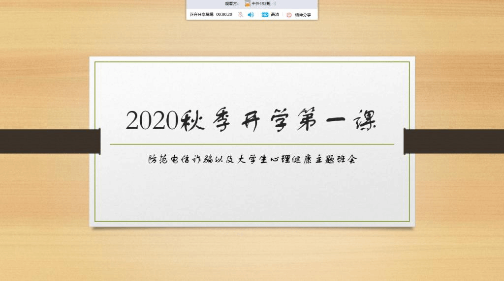 主题班会上,19级各班班长通过QQ班群共享屏幕的形式带领大家认真学习了防范电信网络诈骗和大学生心理健康教育的短视频及如何维护自己心理健康等内容。随后由同学们进行交流讨论,学前教育192班李晓戈说,无论在家还是在校,都要保持愉快的心情,生活上要有目标,这样我们可以在有限的时间内做更多有意义的事情。教育学(中外)192班代增伦谈到,当接到疑似诈骗电话或短信时,要注意核实对方身份,尤其是对方要求向指定账户汇款时,绝不可轻易汇款。