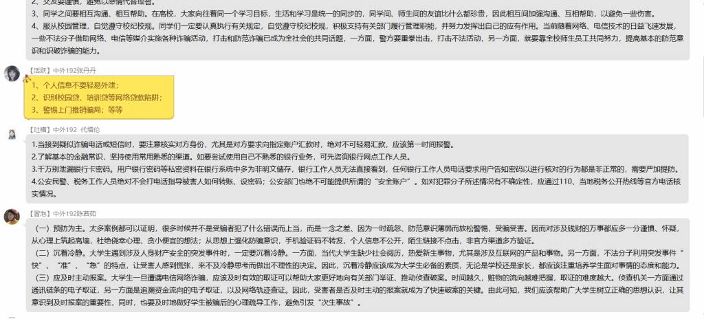 此次主题云班会有助于绅士漫画 19级同学进一步认识到现代诈骗手段的变化多端,增强自身安全防范意识的重要性,同时,使更多同学懂得要保持健康、阳光的心态,树立积极乐观的正确生活观念。