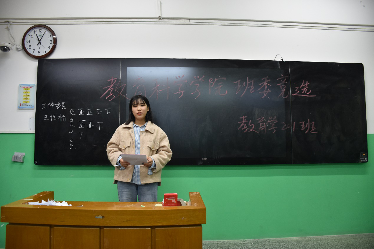 今年班委任命情况有所变化,贯彻班团一体化,实行团支委领导下的班长负责制。随后,对竞选成功的班干部表示祝贺,同时提出了以下要求:一是班委工作需尽心尽责,在其位谋其职;二是班委要保持学习的热情,做好班集体模范带头作用;三是要有服务意识,当今入校服务好班级、同学,将来毕业服务好社会、人民。随后,鼓励同学们无论竞选成功与否,都不要气馁,保持初心,再接再厉。