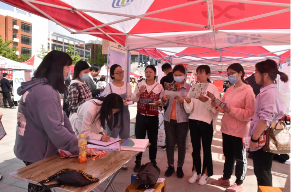 与经济管理学院、艺术学院、文法学院、数学科学学院、体育学院、外国语学院联合承办的2021年“纳贤•助航”系列校园招聘会——文科类双选会在启智广场举行。