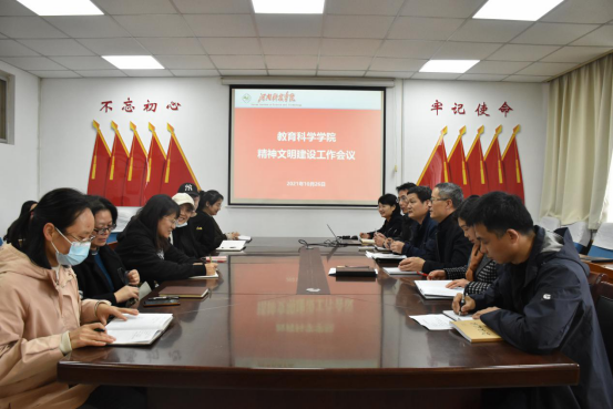 于零号楼十楼会议室召开精神文明建设工作专题会议,学院党政班子成员及全体教职工参加会议。会议由院党委书记张涛主持。