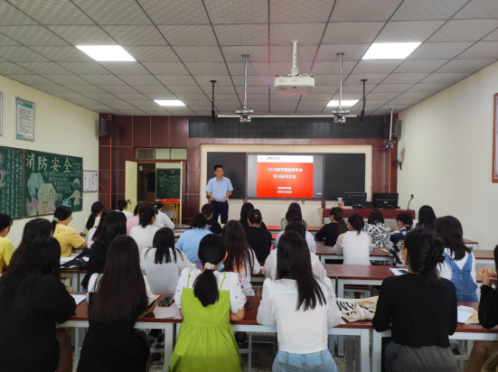 教育实习学生守则》,详细介绍了本次教育实习的任务与安排,实习手册的填写要点,着重强调实习指导教师与学生的实习职责要求,她表示同学们作为实习教师应尽职尽责,勤于总结与反思,提高自身专业素质;作为学生应满怀热情,虚心接受前辈指导,发扬吃苦耐劳精神。最后负责专业论文工作的胡静月老师要求大家与论文导师积极沟通,实习与毕业设计并举,通过教育实习工作实践,凝练论文研究方向,调研并收集资料,做到实习与研习有机整合。