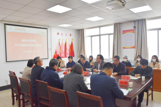 发展历程及研究生教育情况,并以“诚实”为主题,勉励各位同学要诚实地对待自己,真诚地对待学术,诚实地对待生活,对研究生的学习提出了明确的要求。周启副院长向同学们详细地介绍了研究生三年的培养计划,包括课程安排、实践要求及论文写作的时间节点等。机关党支部联点研究生班级班主任陈锋正老师从“教育”“角色”“职业”三个关键词出发,分享了对研究生核心素养的认识以及形成“一揽子能力”的重要性。之后,同学们一一进行了自我介绍。在导师发言环节,苗双虎教授感动于有多位跨考学生选择投身到教育领域,勉励同学们要注重基本理论知识的学习,要在不断的自我加压中提升能力。冯启高教授强调,要学会学习、学会思考、学会研究,研究生学习阶段更要注重思维方式的转变,提升研究的广度及深度。刘秋云副教授提出在研究生学习生涯中要注重教学相长,并鼓励同学们从文化精华和教育经典中吸取知识,朝着心之所向奋力启航。最后,张涛书记对研究生提出三点期望及要求:一是提高政治站位,遵守防疫要求;二是坚定理想信念,铸就高尚品格;三是坚持脚踏实地,锻造扎实本领。