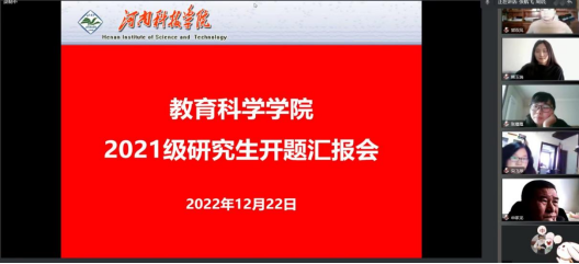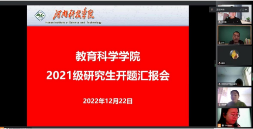 2021级研究生和2020级“硕师计划”研究生学位论文开题汇报会在腾讯会议平台上举行。评议小组由申家龙教授、宋飞琼教授、何二毛教授等十位研究生导师组成,学前教育领域的7位研究生和教育管理领域的10位研究生分为两组参与了此次汇报,2022级研究生旁听了开题会。会议分别由杨宾峰院长和周启副院长主持。