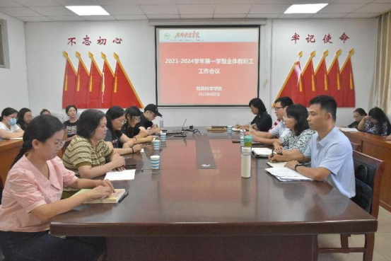 在0号楼1008会议室召开2023-2024学年第一学期全体教职工工作会议,学院全体教职工参加会议。会议由院长兼高等教育研究所所长李小丽主持。