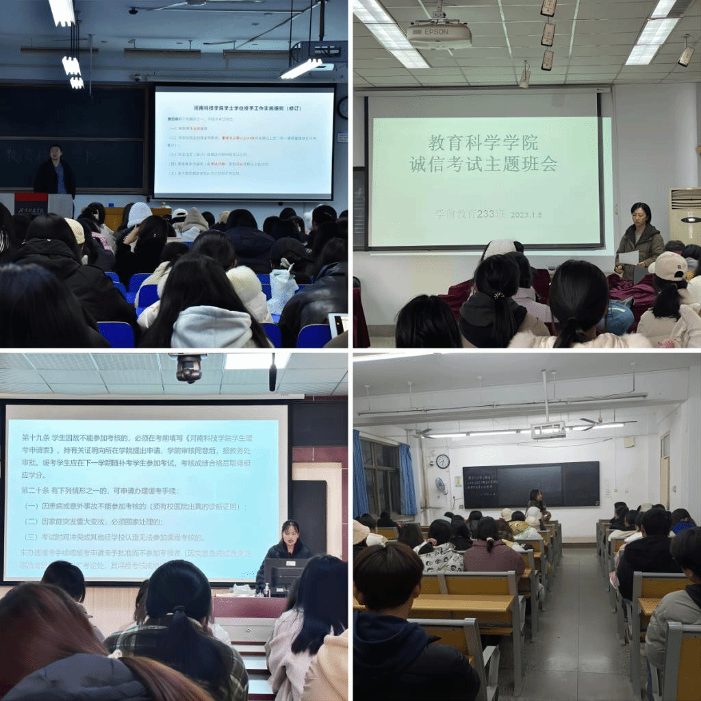 2023级班主任分别召开主题班会,就学生手册中关于考试、考风考纪的相关规定进行了详细解读,强调了考试纪律,明确了考试违纪、考试作弊应受的纪律处分,并结合学生的真实案例向学生们展示了学院狠抓考风考纪,绝不包庇绝不手软的坚定决心。