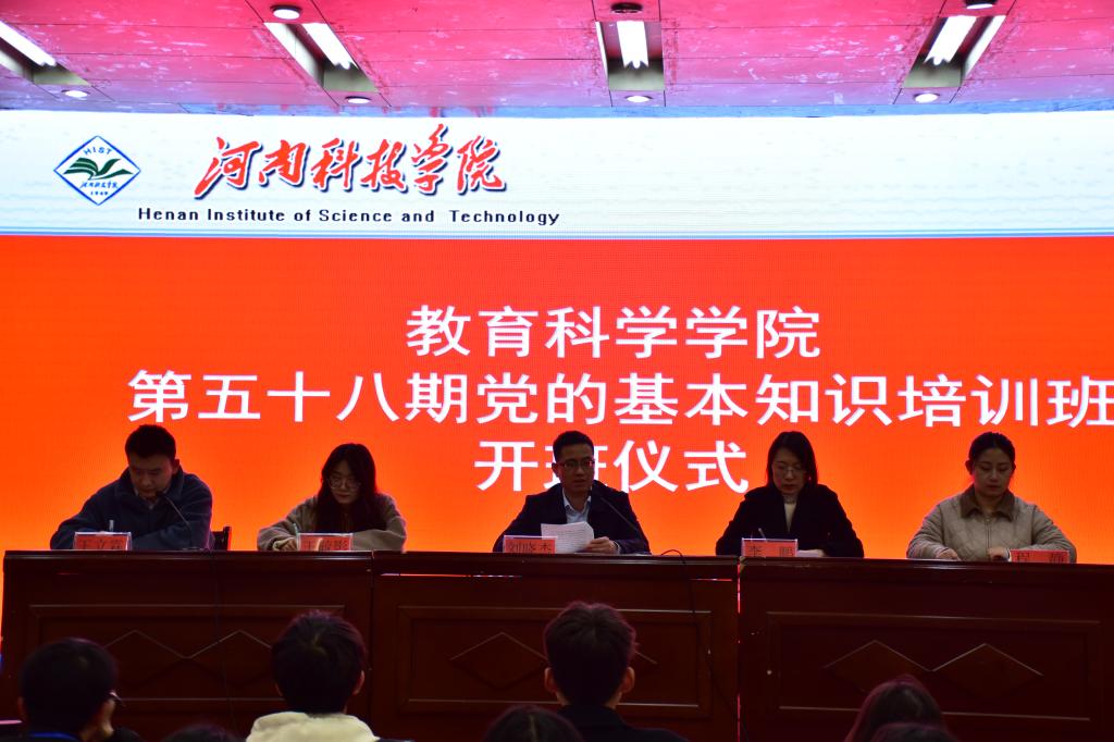 在图教201会议室举行第五十八期党的基本知识培训班开班典礼。院党委书记刘晓杰,党委副书记李鹏,团委副书记王立霖,辅导员王毓影、程静,第五十八期入党积极分子,全体学生党员,2023级学生参加活动。会议由王立霖主持。