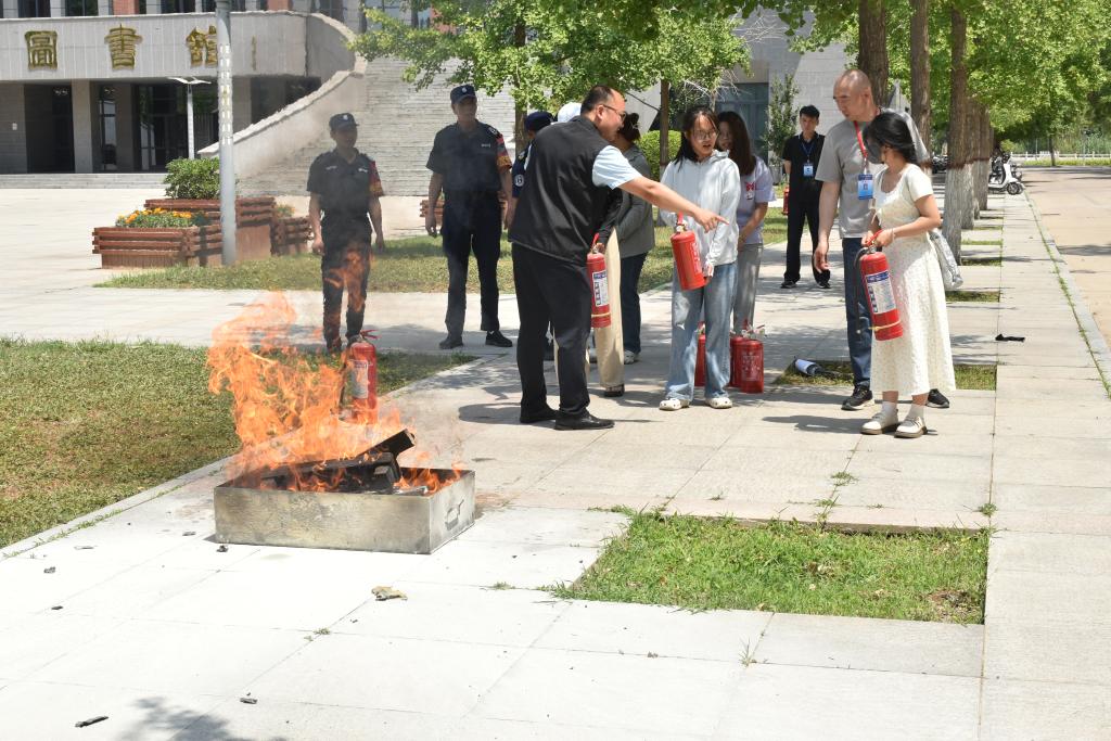 讲座中,吕南带领师生观看了消防安全视频,并分析近年来发生的多起火灾案例,介绍了常见火灾事故原因、所造成的危害影响,强调了定期消防安全检查和演练的重要性。随后,他围绕防毒面具佩戴方式、高楼火灾自救措施、常用灭火器的使用技巧等方面讲解了火灾逃生和疏散的基本知识。最后,参会师生在学校保卫处的安排下开展了消防实战演练,通过模拟火灾现场,亲手使用灭火器材,提高施救能力。