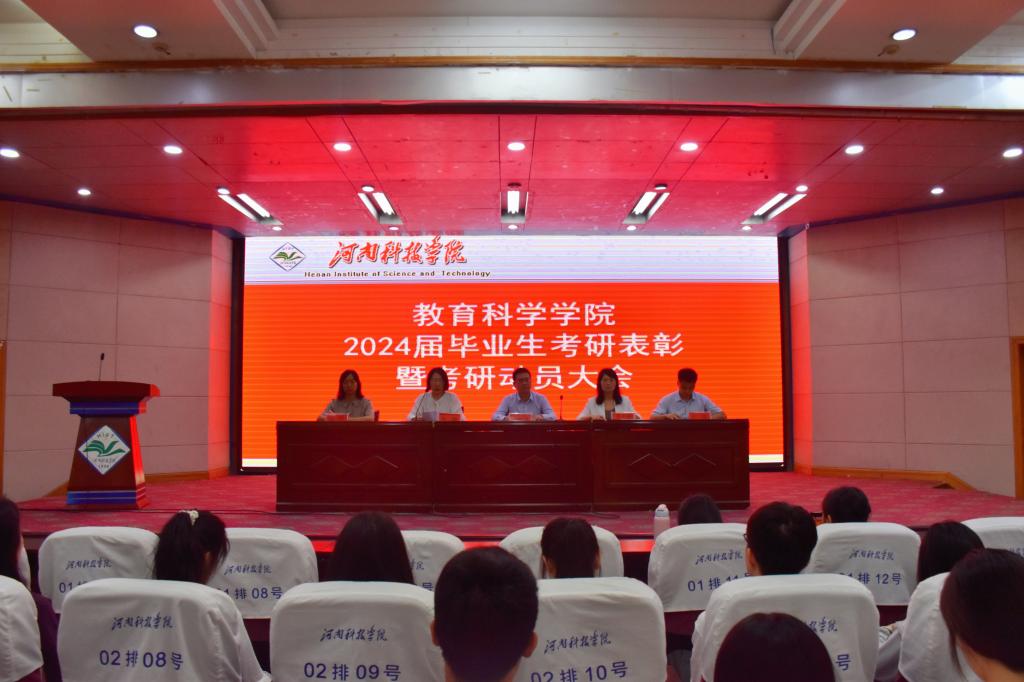 关于对2024届毕业生考研表彰的决定》。与会领导为考取硕士研究生学生颁发荣誉证书并合影留念。学生代表赵文姬、教师代表钱晓玲分别发言,为同学们提供切实可行的考研经验和指导。