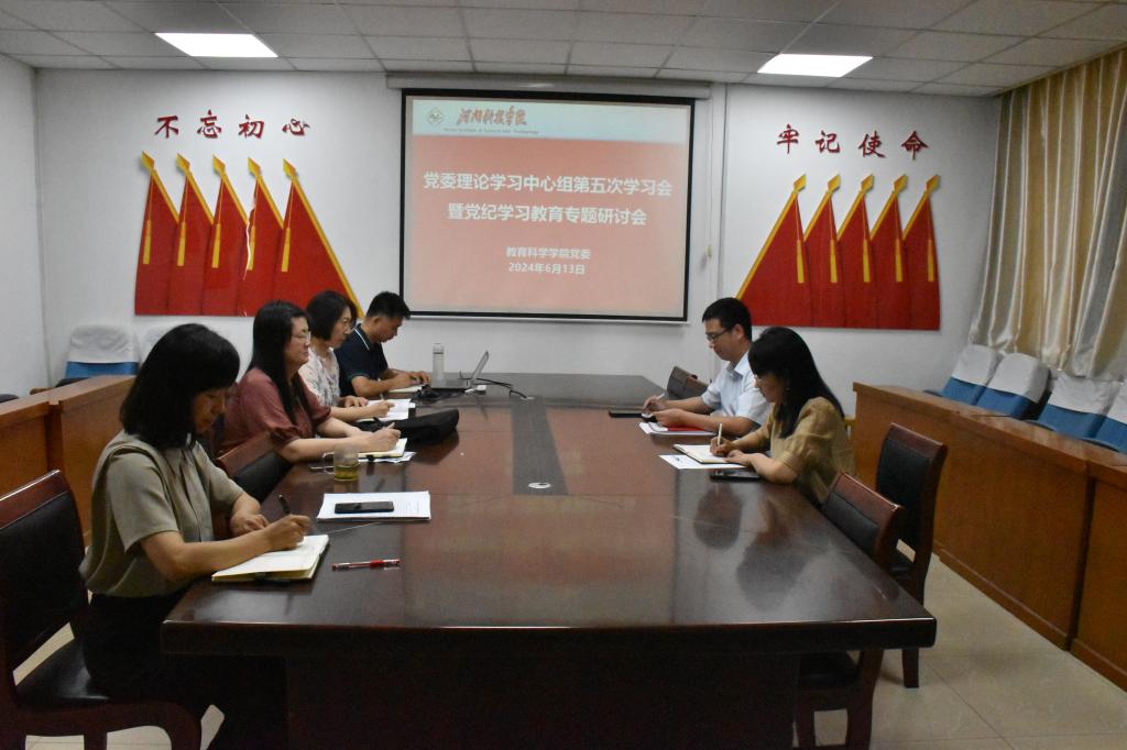 在0号楼1008会议室召开党委理论学习中心组第五次学习会暨党纪学习教育专题研讨会。学院党政班子成员参加会议。