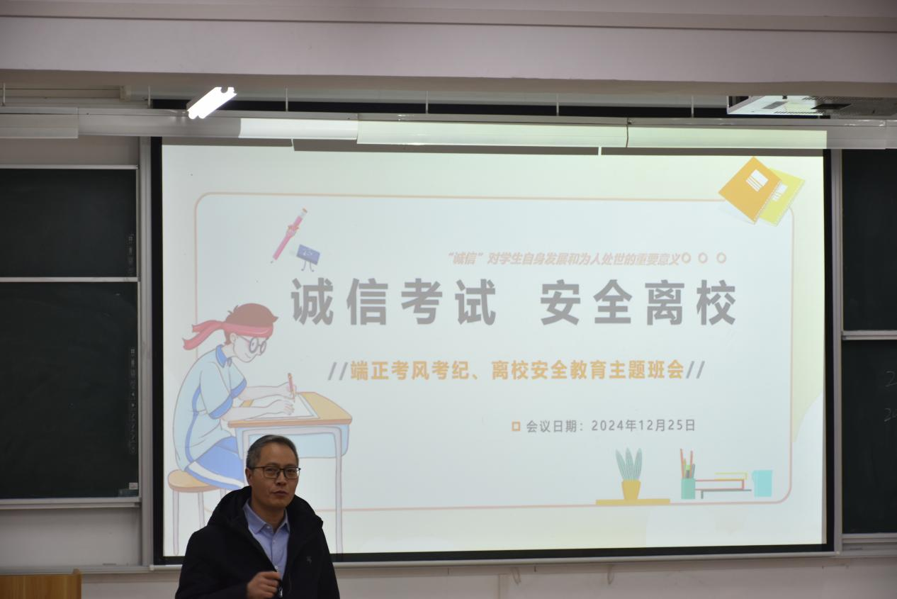 2024级诚信考试暨安全离校主题会议。教务处处长杨宾峰、考务科科长李佳翼、院党委副书记李鹏、2024级辅导员王毓影出席会议,2024级全体学生参加会议。
