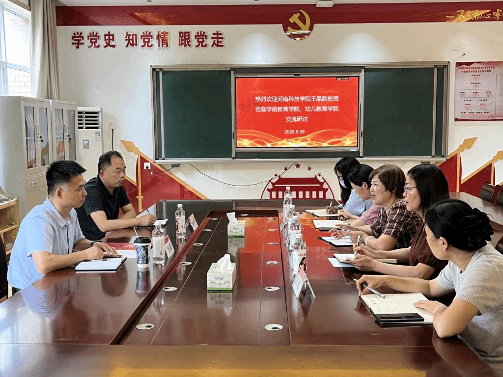 为进一步提升专业办学水平及社会服务能力,副院长王晶于5月29日赴驻马店幼儿师范高等专科学校学前教育学院、幼儿教育学院开展国培项目调研。幼儿教育学院院长张彧、学前教育学院党委书记李晓、副书记李景涛、教学科研科科长邱家俐、心理教研室主任冯俊及教师代表参加交流会,会议由李景涛主持。