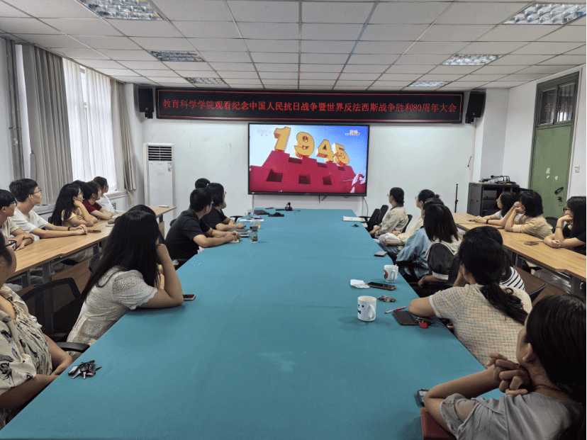 组织师生在零号楼906会议室集中观看纪念中国人民抗日战争暨世界反法西斯战争胜利80周年大会。