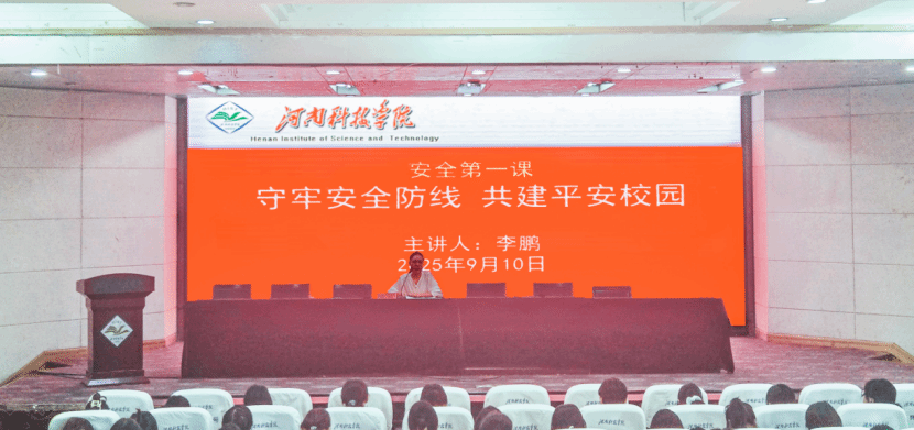 党委副书记李鹏在图教201会议室为2025级全体新生讲授安全教育第一课。