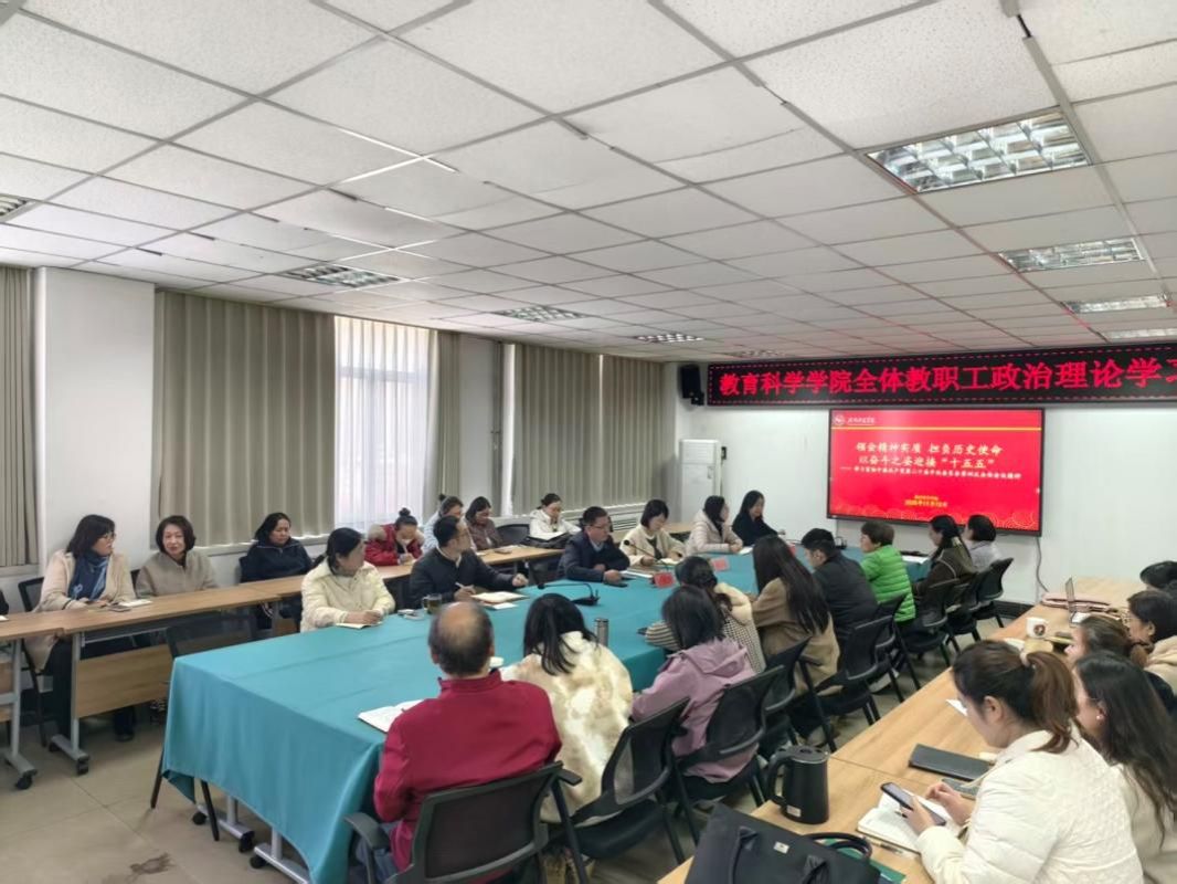 党委书记刘晓杰以《领会精神实质 担负历史使命 以奋斗之姿迎接“十五五”》为题,紧紧围绕“十四五”时期我国发展取得的重大成就,“十五五”时期在基本实现社会主义现代化进程中的重要地位,“十五五”时期经济社会发展面临的国际国内形势,以及十五五”时期经济社会发展的指导思想、重大原则、主要目标、战略任务和重大举措、根本保证等方面进行深入解读,并就今后一个时期全会精神贯彻落实进行安排部署,要求大家要加强对全会精神的学习宣传,切实把思想和行动统一到全会精神上来;加强对全会精神的贯彻运用,切实以全会精神为指引,扎实做好学院党建、教学、科研、管理、就业创业、安全稳定、“十五五”规划编制等方面工作,凝心聚力、攻坚克难,持续推动学院事业高质量发展。