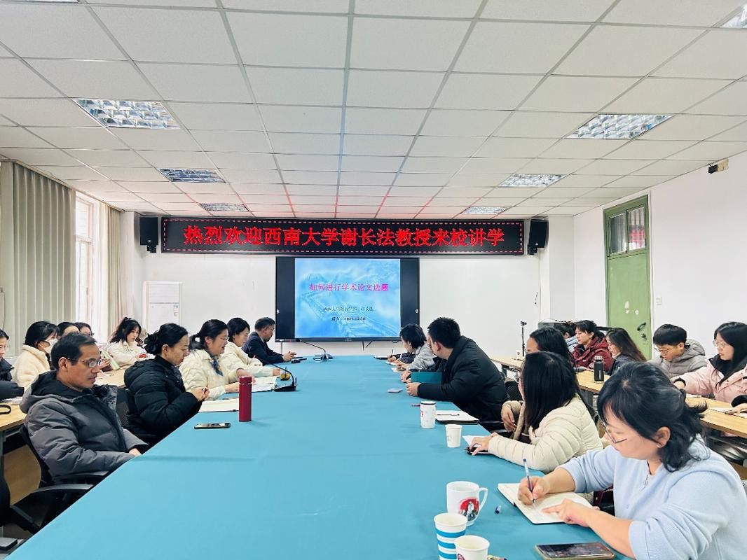 会上,谢长法教授提出了选题的三个层面,一是认知框架:从 “认识自我志趣能力”“学习先贤研究成果”“把握学术本质规律”构建选题认识论,强调研究者需先完成自我定位与学术史梳理;二是实践路径:提出“继承方能创新”的核心观点,结合目录学视角阐释 “大材料观”积累方法,为跨学科研究提供方法论支撑;三是问题导向意识:以“学术研究本质是创新”为共识,引导师生突破选题瓶。