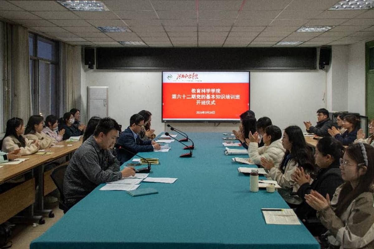在零号楼906会议室举行第六十二期党的基本知识培训班开班仪式暨首场辅导报告会。院党委书记刘晓杰、党委副书记李鹏、团委书记王毓影、正科级辅导员程静、团委副书记王立霖,以及第六十二期入党积极分子参加会议。会议由王立霖主持。
