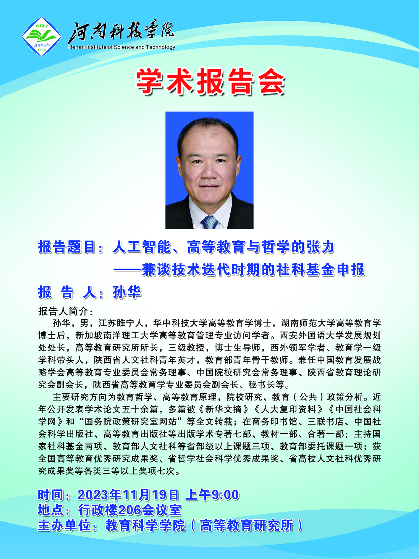 学术报告:人工智能、高等教育与哲学的张力一兼谈技术迭代时期的社科基金申报
