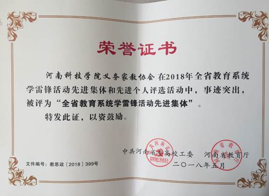 近日,中共河南省委高校工委、河南省教育厅联合下发的《关于公布全省教育系统学雷锋活动先进集体和先进个人的通知》(豫思政〔2018〕399号),表彰公布了2018年全省教育系统学雷锋活动先进集体和先进个人。此次表彰的全省教育系统学雷锋活动先进集体共100个,绅士漫画 义务家教协会被授予“河南省教育系统学雷锋活动先进集体”荣誉称号。