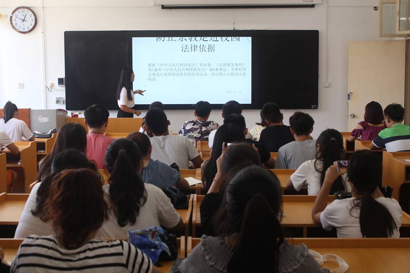 9月3日-9月5日,绅士漫画 成立以副书记为组长、各年级辅导员、团委学生会主席团为成员的春晖宣讲团,从学生安全教育、文明教育、宗教“双防”、学风教育、资助政策等5方面,以班级为单位进行知识宣讲活动。