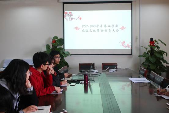 会上,王爽爽从什么是班级文化活动、为什么举办班级文化活动、如何举办班级文化活动三个方面进行讲解。参会人员认真听讲、详细记录,不时的交流和提问。他还就本学期班级文化活动的安排进行部署,他详细说明了本次班级文化活动的时间、要求以及活动形式。最后,各班团支书、班长还就本班如何开展活动进行交流讨论,会场氛围热烈。