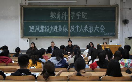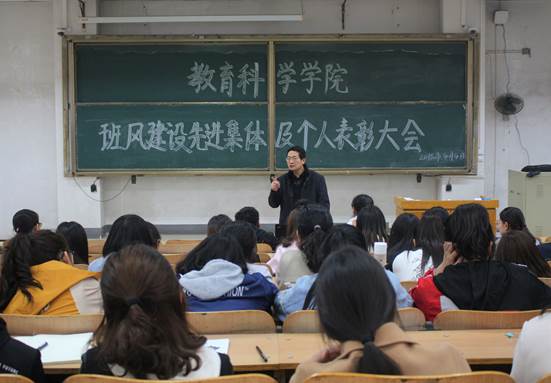 会议伊始,熊老师宣读会议表彰决定及表彰结果。获得表彰的班风建设先进集体有:学前161、教育学162、中外162、中外171、中外172、中外174,获得表彰的班风建设先进个人有:姜迎、袁媛、李其奇等138人。随后,全体老师为受表彰班级及先进个人颁奖。学生代表王铎、李其奇等进行发言,讲述自己在班级活动和班风建设过程中的收获与成长。最后,朱书记做总结讲话,他强调班风建设的重要性并希望广大学子不忘初心,坚定理想信念,做好基本学习环节,养成良好生活习惯,共同营造出良好的学习氛围。