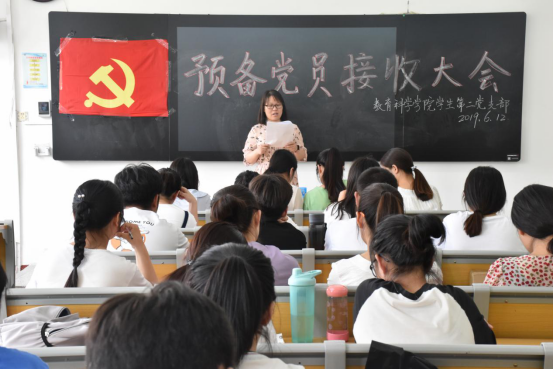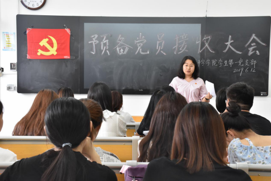 学生第一、第二党支部分别在一号教学楼309和311教室召开预备党员接收大会。会议由学生党支部书记熊慧娟、卢璐洁主持,支部全体党员、预备党员参加。